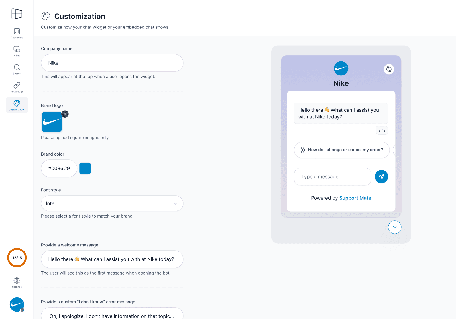 By empathizing with customer needs, conceptualizing a dual-function support and search system, and designing a user-centric interface with robust analytics, Support Mate helps brands reduce support load, enhance user satisfaction, and drive operational efficiency.