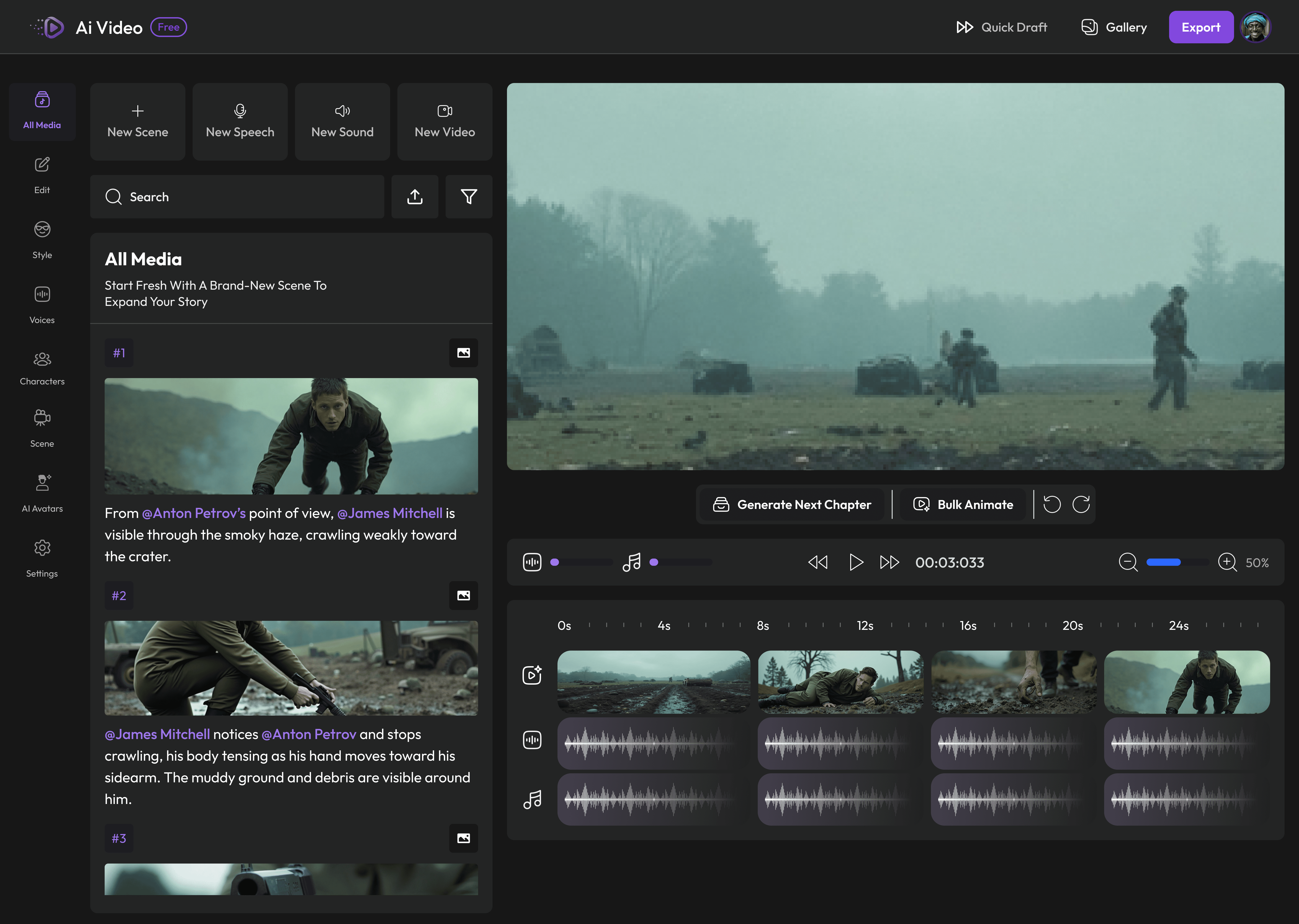 Script Development: Collaborative script editor with AI assistance